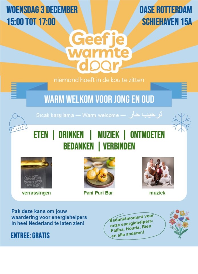 Naast de aftrap in Rotterdam worden er door heel Nederland Geef Je Warmte Door Dagen georganiseerd. Je bent van harte welkom bij een van deze evenementen!